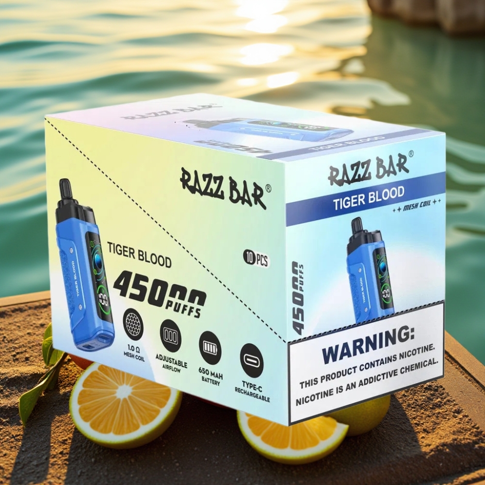 Razz Bar 45000 Puffs Tiger Blood Disposable Vape with Mesh Coil & Adjustable Airflow