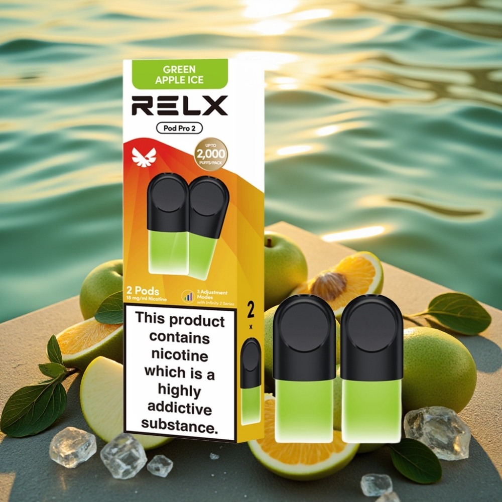 RELX Pod Pro 2 Green Apple Ice 1.8% Nicotine 600 Puffs 3 Voltage Modes